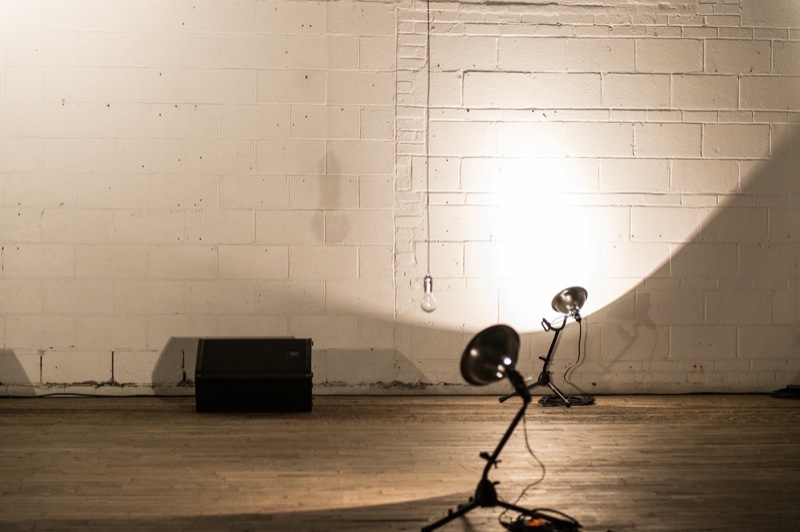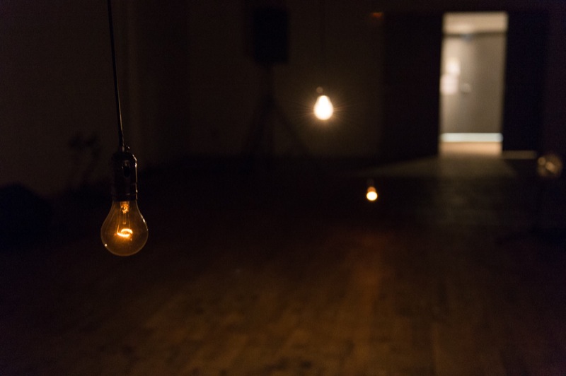 Photomaton is a sound installation for three incandescent light bulbs, whose variable intensity is orchestrated with the music. The bulbs are mechanically actuated allowing them to oscillate in a pendulum effect and change height. The piece explores failure and strangeness using 'glitches', electricity, 'hums' and 'buzzes' and pure sinusoids. The small number of lights emphasizes each bulb’s individuality and the narrative aspect of the work.