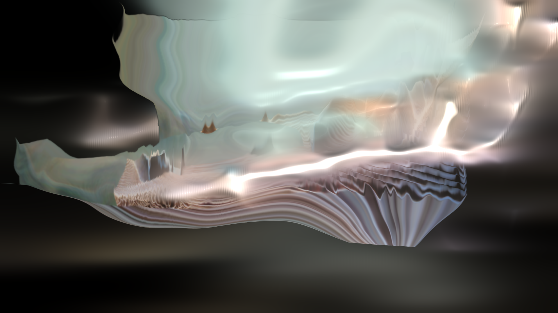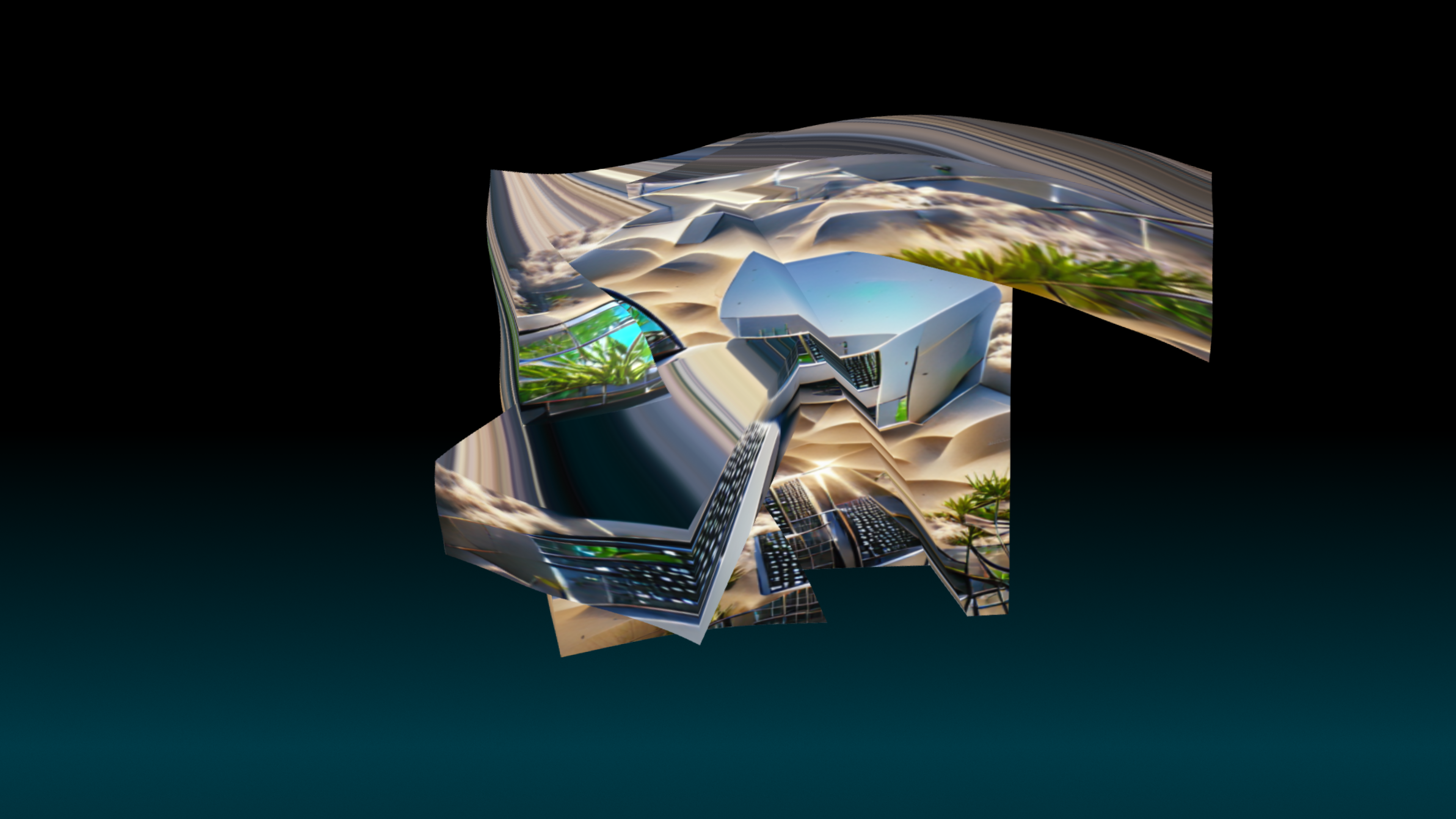 Human and natural constructions – mountains, sea shores, skyscrapers and facades – are digitally sampled, instanciated and assembled in animated collages. A fleeting materiality emerges, machine learning allowing for slow metamorphosis between textures and materials, from marble to silk, from concrete to flesh.